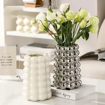 Nordic Ceramic Milk White & Silver Tabletop Vase - Modern Home Decor