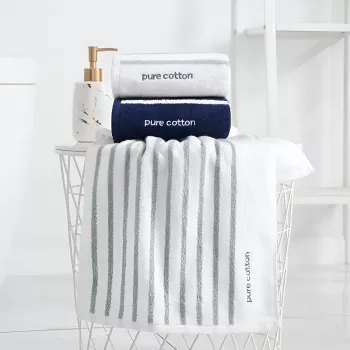 Large Striped Cotton Bath Towel Set – Quick-Dry Organic Cotton Towels