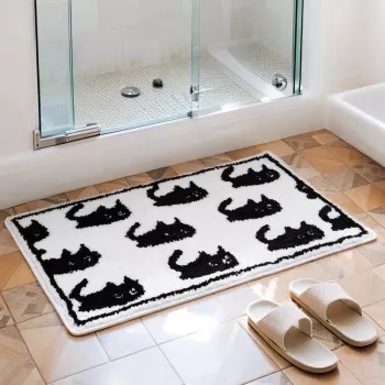 Soft Geometric Tufted Anti-Slip Bath Mat – Black & White Grid Rug