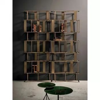 Luxurious Gilt Brass Metal Bookcase – Designer Display Shelf for Living Room