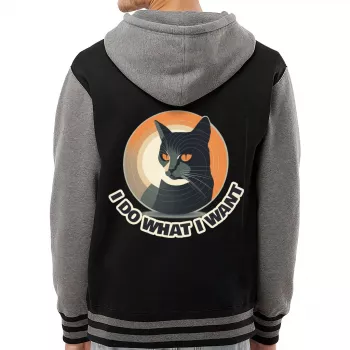 Cat I Do What I Want Varsity Hoodie - Printed Zip Hoodie - Trendy Hooded Sweatshirt