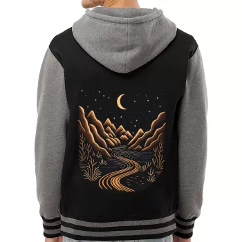 Mountain Design Varsity Hoodie - Illustration Zip Hoodie - Landscape Hooded Sweatshirt