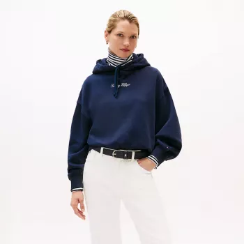 Tommy Hilfiger Women's Blue Hooded Sweatshirt - Organic Cotton Blend