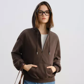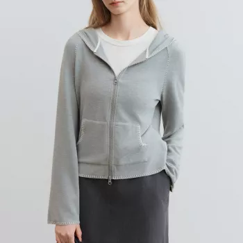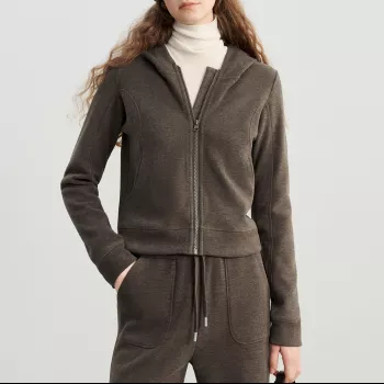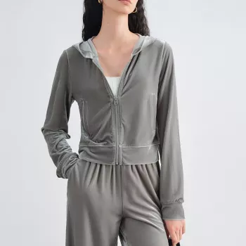 Petite Velvet Zip-Up Hooded Cardigan for Women