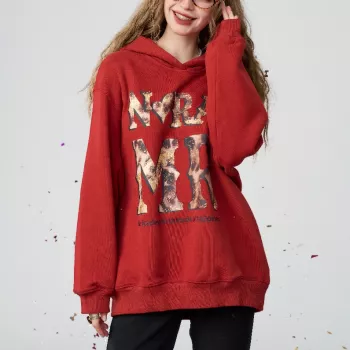 Winter Retro Red Leopard Fleece Hoodie for Women