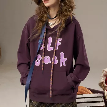 Winter Cozy Letter Print Loose-Fit Pullover Hoodie for Women