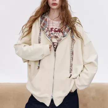 Winter Plaid Lined Hooded Zip-Up Jacket for Women