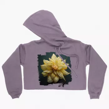 Yellow Dahlia Flower Women's Cropped Fleece Hoodie - Flower Cropped Hoodie for Women - Nature Hooded Sweatshirt