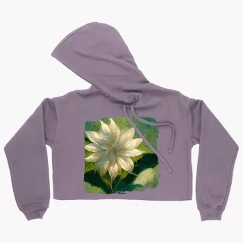 White Dahlia Flower Women's Cropped Fleece Hoodie - Art Cropped Hoodie for Women - Printed Hooded Sweatshirt