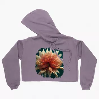 Artificial Dahlia Flower Women's Cropped Fleece Hoodie - Flower Cropped Hoodie for Women - Printed Hooded Sweatshirt