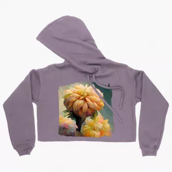 Dahlia Flower Painting Women's Cropped Fleece Hoodie - Nature Cropped Hoodie for Women - Unique Hooded Sweatshirt