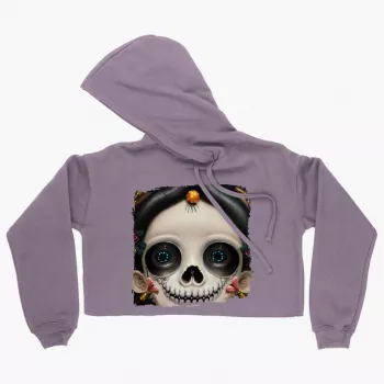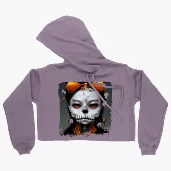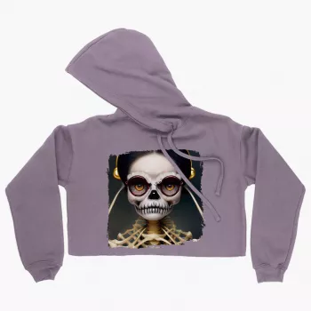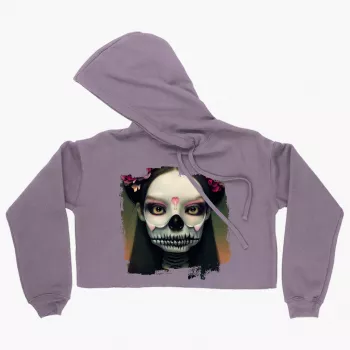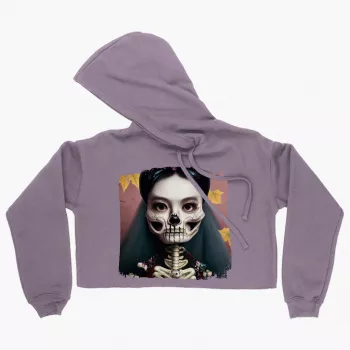 Skeleton Girl Women's Cropped Fleece Hoodie - Gothic Cropped Hoodie for Women - Artwork Hooded Sweatshirt
