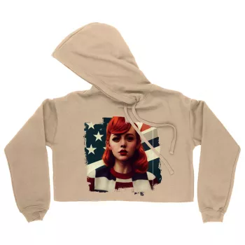 Girl Red Hair American Women's Cropped Fleece Hoodie - Patriotic Cropped Hoodie for Women - Art Hooded Sweatshirt