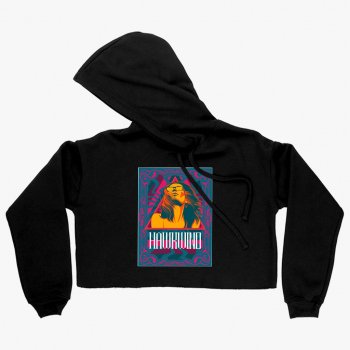 Women's Cropped Fleece Hawkwind Hoodie - Vintage Hawkwind Band Hoodies