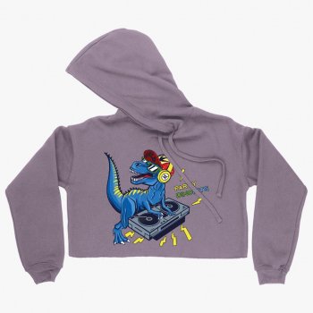 Women's Cropped Fleece Party DinoMite Hoodie - Dinosaur Hoodie