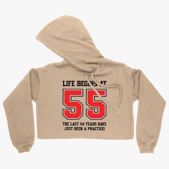 Women's Cropped Fleece Life Begins at 55 Hoodie - 55th Birthday Hoodies - 55 Year Old Birthday Hoodie