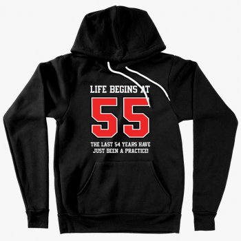 Sponge Fleece Life Begins at 55 Hoodie - 55th Birthday Hoodies - 55 Year Old Birthday Hoodie