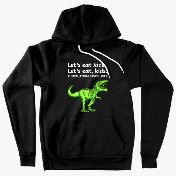 Sponge Fleece Punctuation Saves Lives Dinosaur Hoodie - Dinosaur Print Hoodie