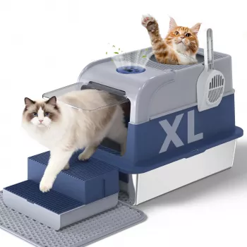 Stainless Steel Large Cat Litter Box with Lid, Scoop, and Mat for Big Cats