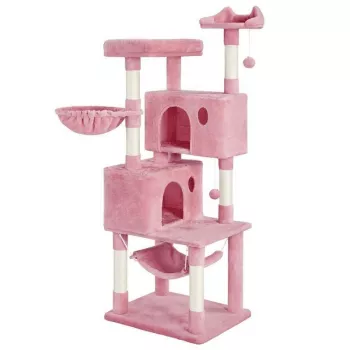 64'' Multi-Level Pink Cat Tree Tower with Condos, Scratching Posts, and Hammock