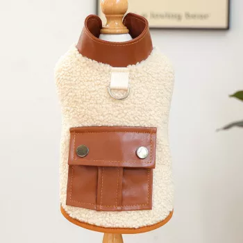 Luxury Dog Jacket with PU Pocket – Warm Sleeveless Coat for Small Dogs