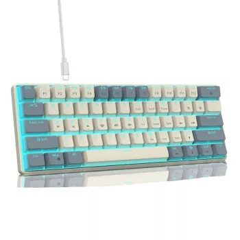 60% Mini Gaming Keyboard with Ice Blue Backlighting, Mechanical Red Switches, 61 Keys