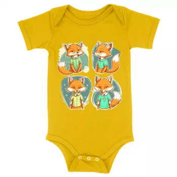 Kawaii Fox Baby Jersey Onesie - Cartoon Design Baby Bodysuit - Animal Baby One-Piece