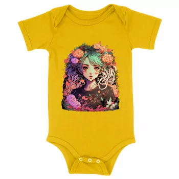 Anime Design Baby Jersey Onesie - Floral Baby Bodysuit - Cute Baby One-Piece