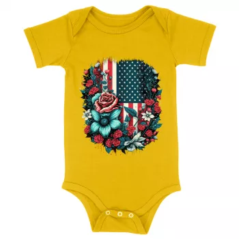 Cute Patriotic Baby Jersey Onesie - Floral Baby Bodysuit - USA Flag Baby One-Piece