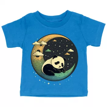 Cute Panda Baby Jersey T-Shirt - Moon Print Baby T-Shirt - Illustration T-Shirt for Babies