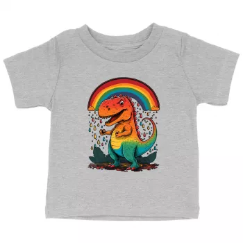 Rainbow Dinosaur Baby Jersey T-Shirt - Cartoon Baby T-Shirt - Cute Design T-Shirt for Babies