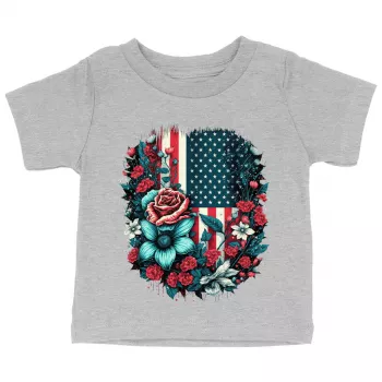 Cute Patriotic Baby Jersey T-Shirt - Floral Baby T-Shirt - USA Flag T-Shirt for Babies