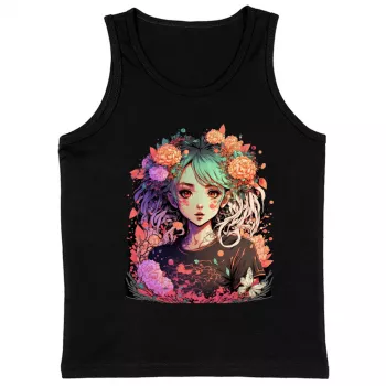 Anime Design Kids' Jersey Tank - Floral Sleeveless T-Shirt - Cute Kids' Tank Top