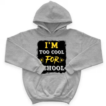 Too Cool for School Kids' Sponge Fleece Hoodie - Funny Saying Kids' Hoodie - Cool Design Hoodie for Kids