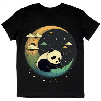 Cute Panda Kids' T-Shirt - Moon Print T-Shirt - Illustration Tee Shirt for Kids