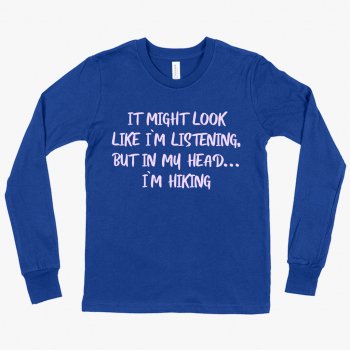 Kids' I Might Look Like I’m Listening Long Sleeve T-Shirt - Hiking Boys' T-Shirt - Sarcastic T-Shirt