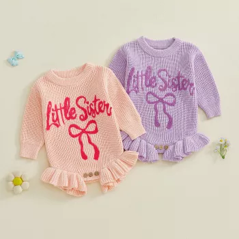 Infant Girl Knitted Sweater Romper with Bow Embroidery
