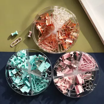 72 Pcs Rose Gold Binder Clips, Paper Clips & Push Pin Set – Cute Office & School Supplies