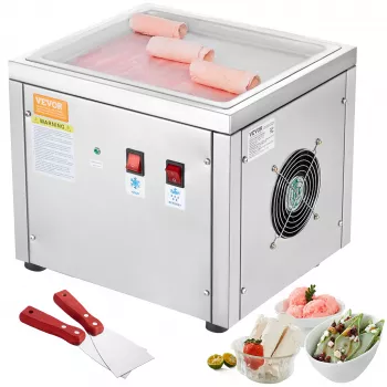 Commercial Rolled Ice Cream Machine with Compressor - Stainless Steel