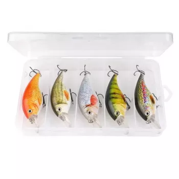 5-Piece Floating Crankbait Lure Set with Rattle for Pike & Bass