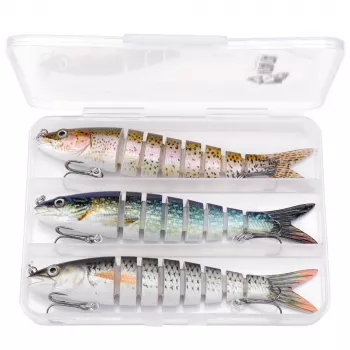 3-Piece Lifelike Pike Swimbait Set with Tackle Box
