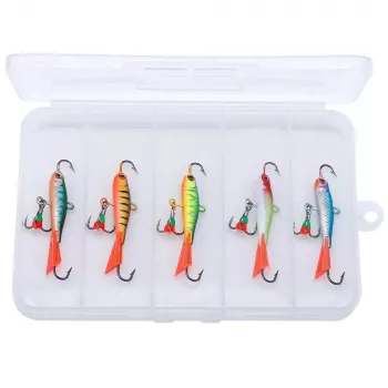 5-Piece Balanced Ice Jig Lure Set with 3D Eyes for Winter Fishing
