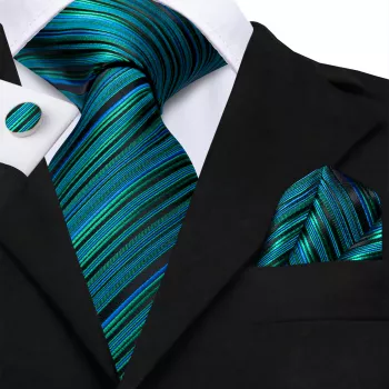 Green Striped Silk Men’s Tie Set – Elegant Jacquard Neckties for Business & Weddings
