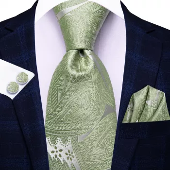 Paisley Sage Green Silk Necktie Set for Men – 3PCS Formal Tie Collection