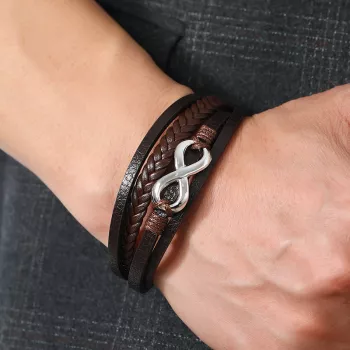 Men’s Punk Leather Bracelet with Stainless Steel & Braided Rope