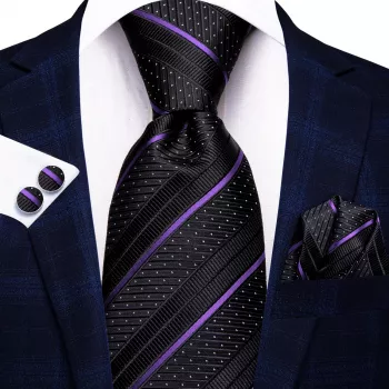 Luxury Navy Blue Silk Tie Set with Stripes and Accessories