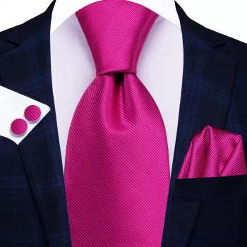 Solid Hot Pink Silk Necktie Set with Handkerchief & Cufflinks – Classic Men’s Accessory
