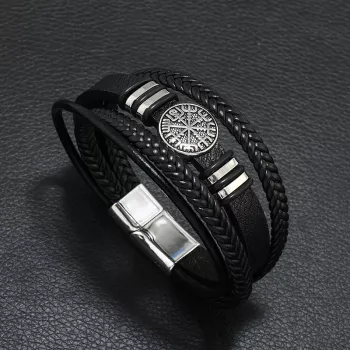 Vintage Viking Leather Wrap Bracelet with Norse Rune Amulet