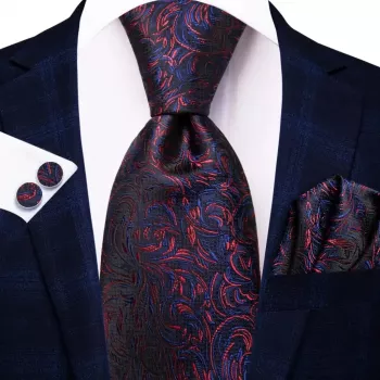 Men’s Silk Necktie Set with Pocket Square & Cufflinks
