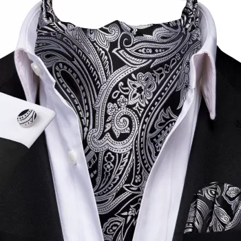 Men’s Silk Ascot Tie Set with Hanky & Cufflinks